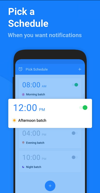 * زمان بندی انعطاف پذیر دسته ای - وقتی می خواهید اعلان ها دریافت کنید ، روزهای روز را انتخاب کنید. از کار ، خواب و وقت شخصی خود محافظت کنید!