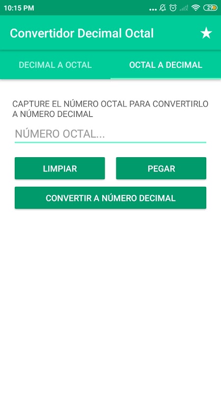 • برنامه‌نما Decimal Octal Converter عکس از صفحه