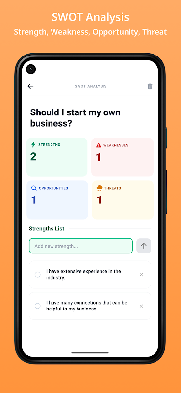 این یک ابزار برنامهریزی استراتژیک برای تفکر در مورد تصویر بزرگتر است. این ابزار از یک جدول ۲x۲ استفاده میکند که در آن عوامل را به نقاط قوت (داخلی/مثبت)، نقاط ضعف (داخلی/منفی)، فرصتها (خارجی/مثبت) و تهدیدها (خارجی/منفی) دستهبندی میکنید تا امکانسنجی یک پروژه یا حرکت شغلی را تجسم کنید.