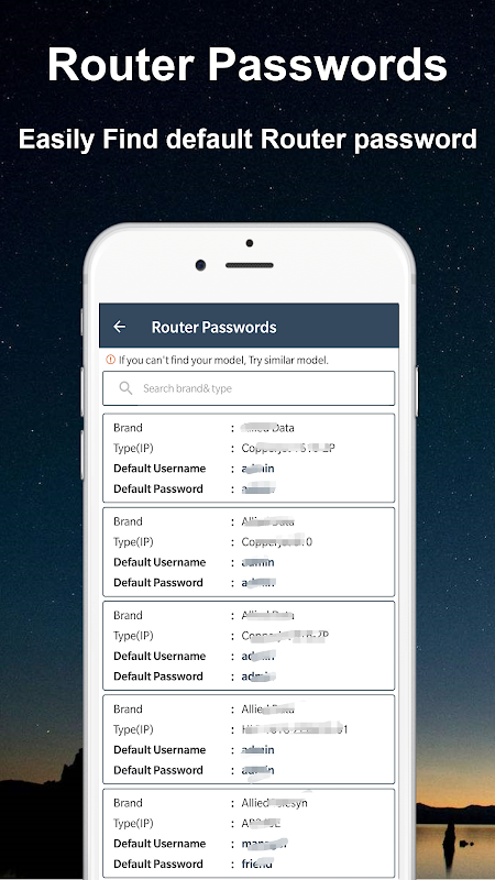 برنامه Router Passwords به شما کمک می کند رمزهای عبور پیش فرض WiFi Router را که برای دسترسی به صفحه تنظیم روتر استفاده می شوند ، دریافت کنید.
