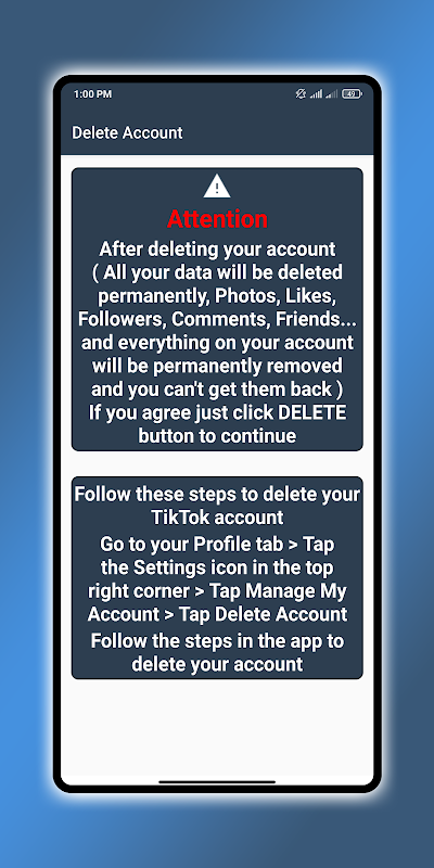 اطلاعات Delete Account APK