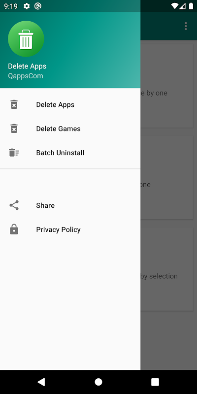 Delete Apps is a tool to remove apps for android phones. It is super easy to use, you can select multiple apps that you want to uninstall, and click "Delete" button to uninstall them.