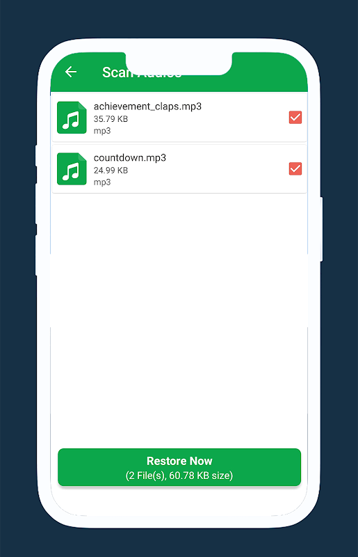 این یک برنامه بازیابی حذف صوتی مفید است. برنامه بازیابی اطلاعات بسیار آسان است. فقط برنامه را باز کنید ، استودیوهای حذف شده را اسکن کنید و می تواند به شما در یافتن و بازیابی استودیوهای حذف شده کمک کند. فقط با چند کلیک ، کلیه تماشاخانه های حذف شده شما انتخاب شده به تلفن شما بازیابی می شوند.
