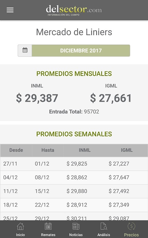 موجود در تمام دستگاه ها و فرمت های، برنامه دانلود رایگان اجازه می دهد تا در جزئیات اطلاعات تولید در بازار Liniers روز به روز، دسترسی به جزئیات از مقوله های گاو کسب و کار و نمایش ارزش ها و به طور متوسط، هر دو هفته به صورت ماهانه.