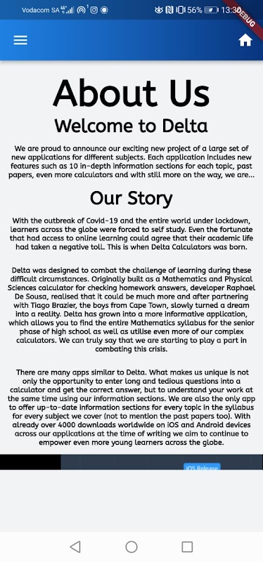 Delta's mission is to bring a new way of checking answers for multiple subjects quickly and efficiently while helping people who struggle in those sections.