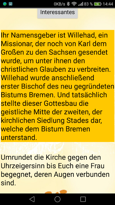 به هر حال: گشت و گذار کنید و داستان های جالب را از Stade یاد بگیرید. هر زمان و هر کجا که می خواهید استراحت کنید ، زیرا زمان در این راهپیمایی مهم نیست.