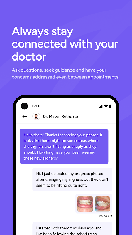 عکسهای درمان درون برنامهای را با ارائهدهنده دندانپزشکی خود بگیرید و بهطور ایمن به اشتراک بگذارید، از بررسیهای مجازی و راهنمایی شخصیشده پشتیبانی میکند.