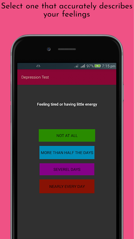 Depression Test will ask you 9 simple questions and you will have to answer those questions by selecting most relevant answer.