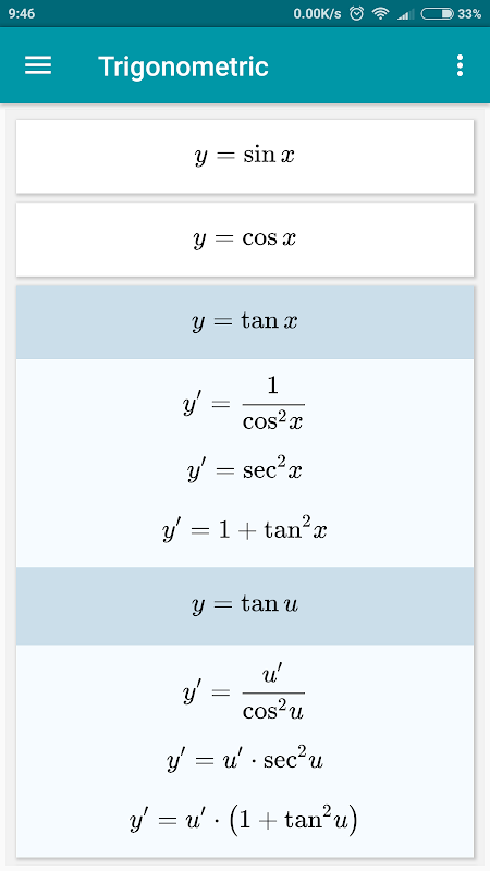 جدول مشتق کامل ترین. همه توابع ساده و مرکب.