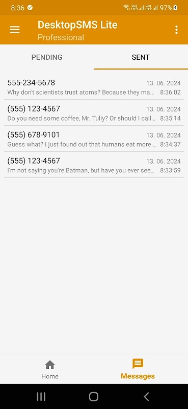 DesktopSMS Lite با پیام رسان SMS پیش فرض Android شما یکپارچه می شود تا همگام سازی SMS و MMS را با DesktopSMS Client در ویندوز فراهم کند. این یک پیام رسان مستقل نیست، به همین دلیل به آن Lite می گویند. با توجه به طراحی سیستم اندروید، فقط پیام رسان پیشفرض اس ام اس می تواند فروشگاه پیام رسانی را تغییر دهد. این بدان معناست که شما نمی توانید پیام ها را حذف کنید یا آنها را به عنوان خوانده شده از نسخه Lite علامت گذاری کنید، اگرچه هدف ما ارائه این ویژگی ها در آینده است!