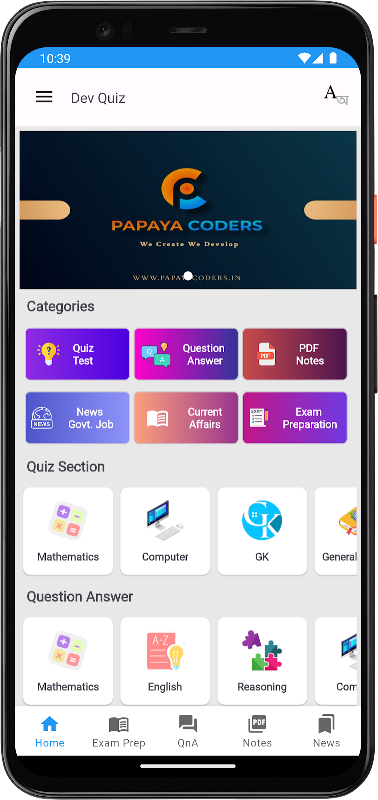 Dev Quiz با ارائه آزمونهای موضوعی، آزمونهای آزمایشی، اخبار روز، یادداشتهای PDF و مطالب مرور سریع - همه در یک مکان - به زبانآموزان کمک میکند تا برای طیف گستردهای از امتحانات رقابتی آماده شوند.