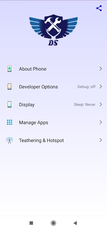 -> میانبر مستقیم برای گزینه های توسعه دهنده با ویژگی هوشمند ، که کاربر را وادار می کند گزینه های توسعه دهنده را با ارائه میانبر و دستورالعمل برای آن فعال کند (اگر غیرفعال باشد) ، و همچنین وضعیت اشکال زدایی USB را نشان می دهد