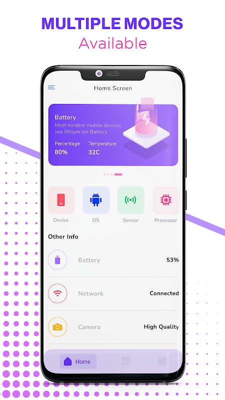 برنامه اطلاعات دستگاه - CPU اطلاعات کامل تلفن را در اختیار شما قرار می دهد تا به شما امکان می دهد عملکرد سیستم خود را هر زمان که بخواهید نظارت کنید. اکنون میتوانید به راحتی سلامت باتری و حافظه تلفن خود را کنترل کنید یا زمانی که احساس میکنید دمای آن بیش از حد گرم میشود، دمای آن را بررسی کنید. با استفاده از این برنامه CPU z، همیشه می توانید اطلاعات سیستم و امنیت خود را زیر نظر داشته باشید. این برنامه بررسی کیفیت سلامت در زمان واقعی یک تست معیار کامل را برای اندازه گیری عملکرد سیستم در دراز مدت انجام می دهد. این بررسی کننده سلامت باتری با تمامی گوشی های اندرویدی و تبلت های اندرویدی سازگار است.
