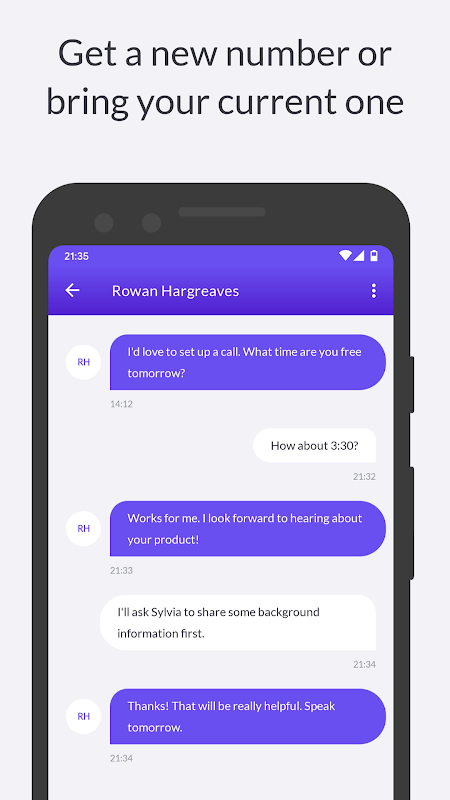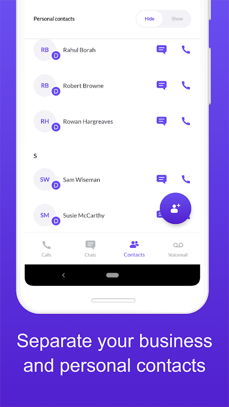 SMEs: ارتباطات تجاری خود را تقویت کنید. از یک شماره اختصاصی برای تعامل با مشتری استفاده کنید در حالی که شماره خصوصی خود را جدا نگه دارید. به طور یکپارچه با مشتریان، شرکا و اعضای تیم در سطح محلی و جهانی ارتباط برقرار کنید.