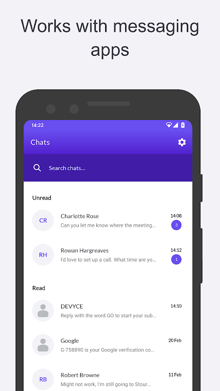 شماره دوم تلفن شما: Devyce شماره همراه دوم بریتانیا را مستقیماً در تلفن فعلی شما ارائه می دهد. از شماره تلفن همراه نامحدود بریتانیا و اتصالات تلفن ثابت همراه با راحتی برنامه های پیام رسانی لذت ببرید.