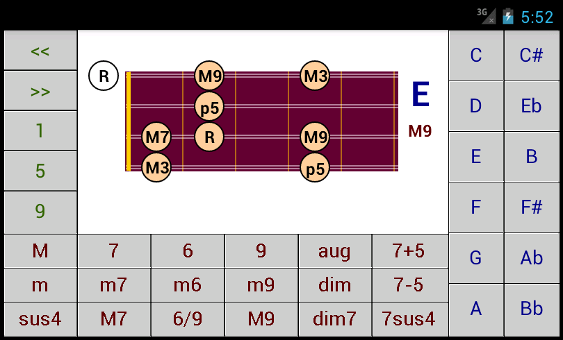 شامل الگوهای وتر زیر در تمام 12 کلید: بزرگ، کوچک، 7، M7، maj7، 6، M6، 6/9، 9، M9، maj9، تقویت، کاهش، کاهش 7، 7 + 5، 7-5، sus4 ، 7sus4.
