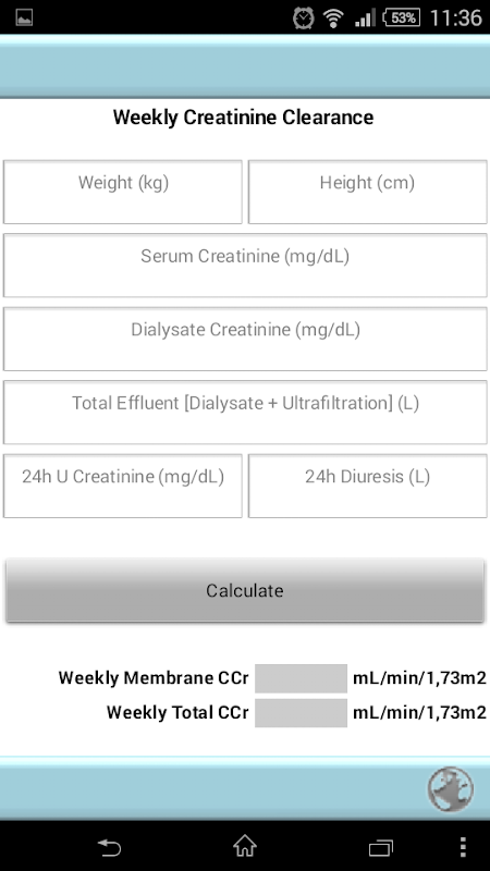 شامل محاسبه برای EGFR، کلیرانس کراتینین، دفع جزء به جزء در املاح، URR KT / V،، صفاقی نوع غشاء و فرآیندهای غشایی و بیشتر.