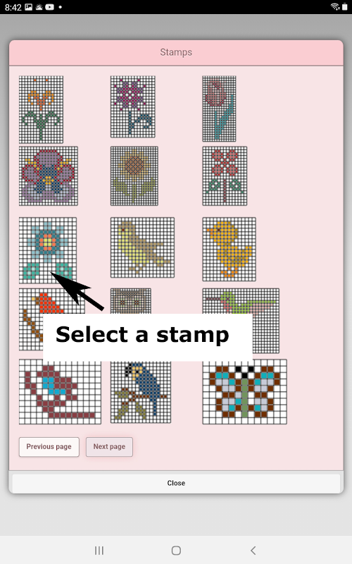 همچنین می توانید از بین بیش از 80 تمبر و حاشیه برای استفاده در الگوی نقاشی الماس خود انتخاب کنید.