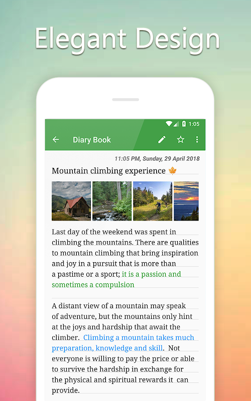 رمز عبور محافظت شده، ویژگی غنی، برنامه رایگان خاطرات با ابر همگام سازی و نمایش تقویم
