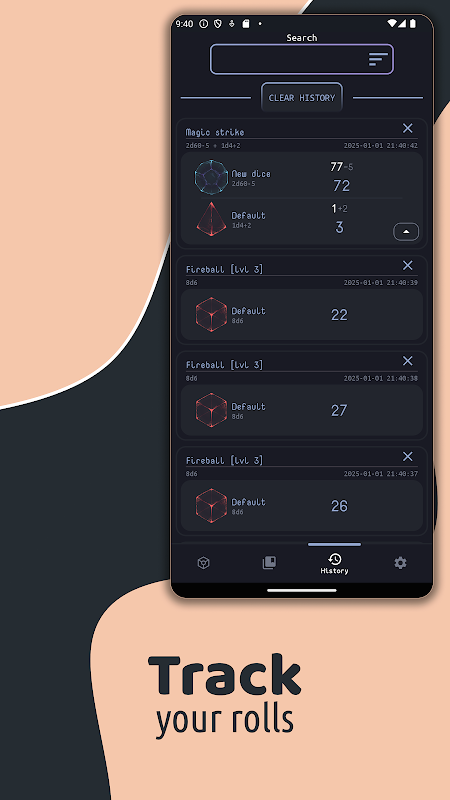 • پشتیبانی از d4، d6، d8، d10، d12، d20، d100