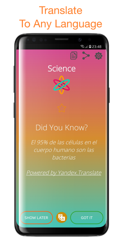 و آخرین اما نه کم؛ شما محدود به قفل یادگیری صفحه نمایش نیستید اگر شما بی حوصله و می خواهید برخی از حقایق سرگرم کننده را یاد بگیرند، می توانید هر زمان که بخواهید از برنامه استفاده کنید و با یادگیری این حقایق جالب، دانش عمومی خود را افزایش دهید.