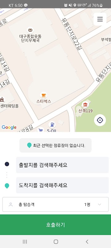 2. 출발위치 기준 버스정류장을 검색하여 출발지를 선택합니다 .