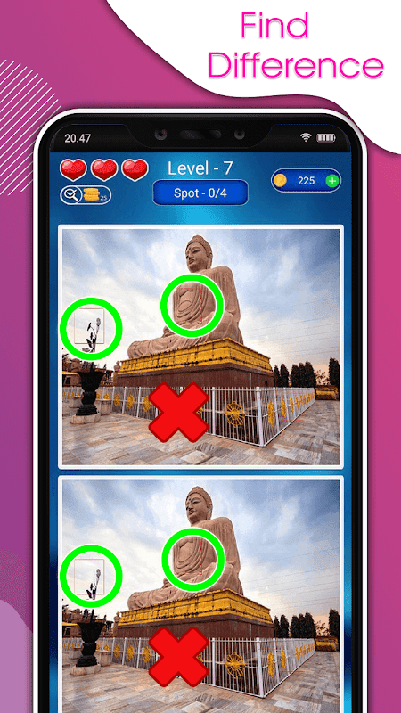 Spot the Difference سرگرمی جالب بازی اعتیاد آور است که شامل پنج دسته در زیر می باشد -:
