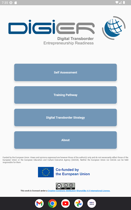برنامه تلفن همراه DigiER با آزمایش اولیه دانش و آگاهی از کارآفرینی فرامرزی دیجیتال در بین کارآفرینان و استارتآپها، مسیرهای آموزشی شخصیسازی شده را تضمین میکند. برنامه تلفن همراه DigiER همچنین یک استراتژی شخصی سازی شده برای کارآفرینان و استارتاپ ها ایجاد می کند تا بتواند نقاط ضعف را برطرف کند و رویکرد خود را در فرآیندهای کارآفرینی فرامرزی دیجیتال تقویت کند.
