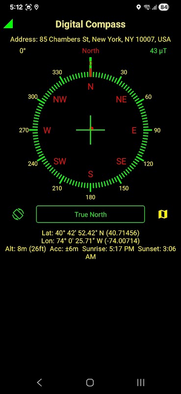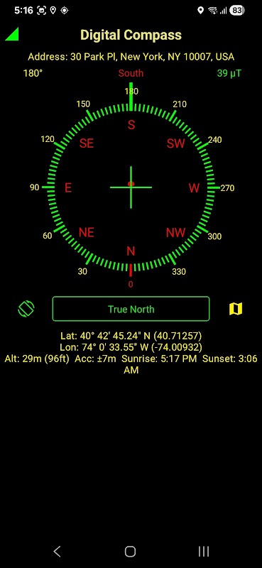 این برنامه چیزی بیش از یک قطبنما است، یک جعبه ابزار کامل GPS با تراز حبابی، زمان طلوع/غروب خورشید و ادغام فوری نقشه.