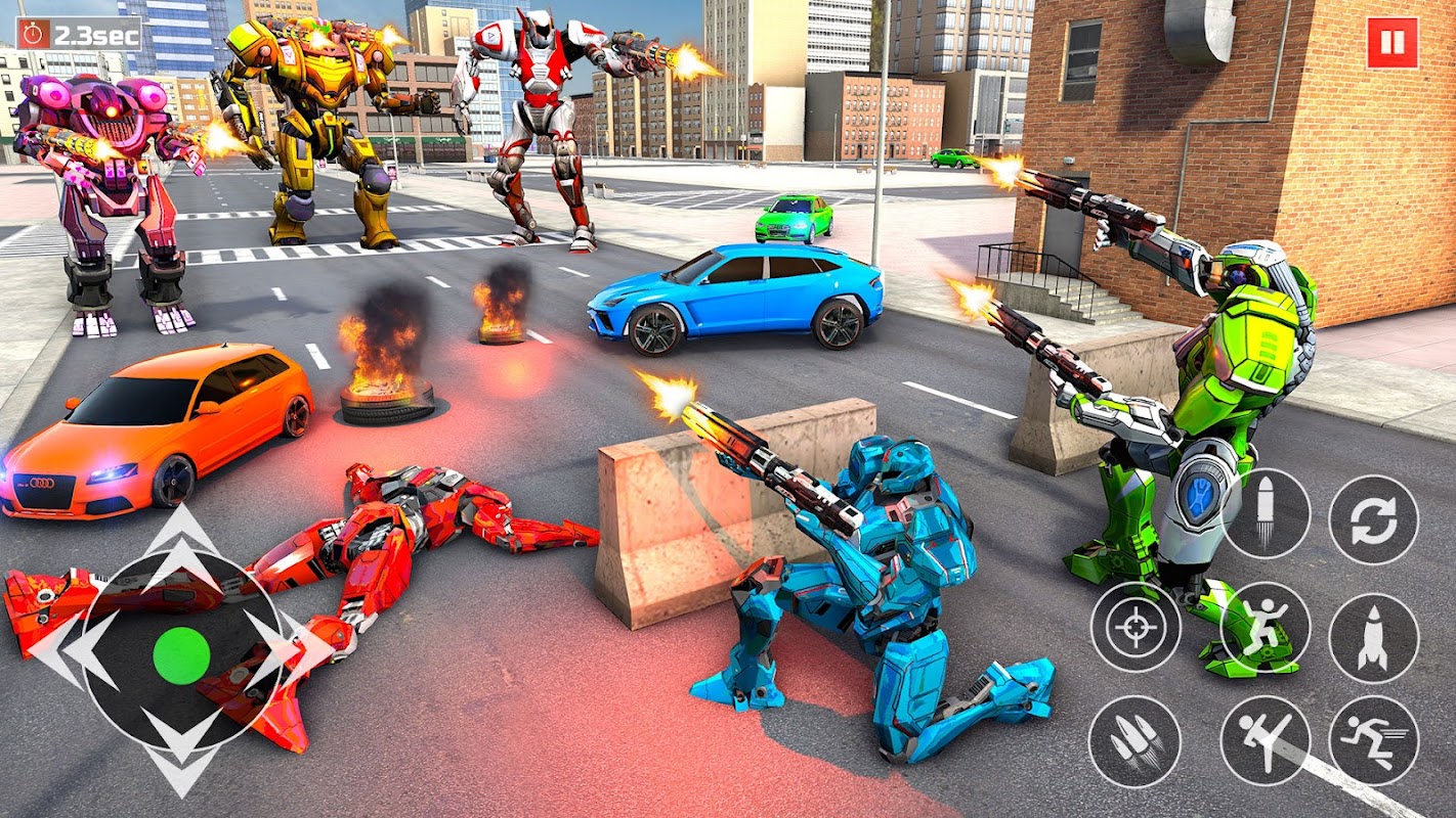 Install the grand robot war games to check our offline robot transforming game with different missions of flying robot car transformation battle games which empowers the robotic player with matchless shooting powers in robot fighting games. In the flying dragon robot car transforming Game, you have a grand hero in the form of wild dino robot games which have the support of police flying car transmute shooting to get the car transform robot features in robot fighting games. The super car transformation battle in real robot transform games adds huge powers of car shooting games which you can use in the way as you desire to shoot at flying cars in robot battle games.