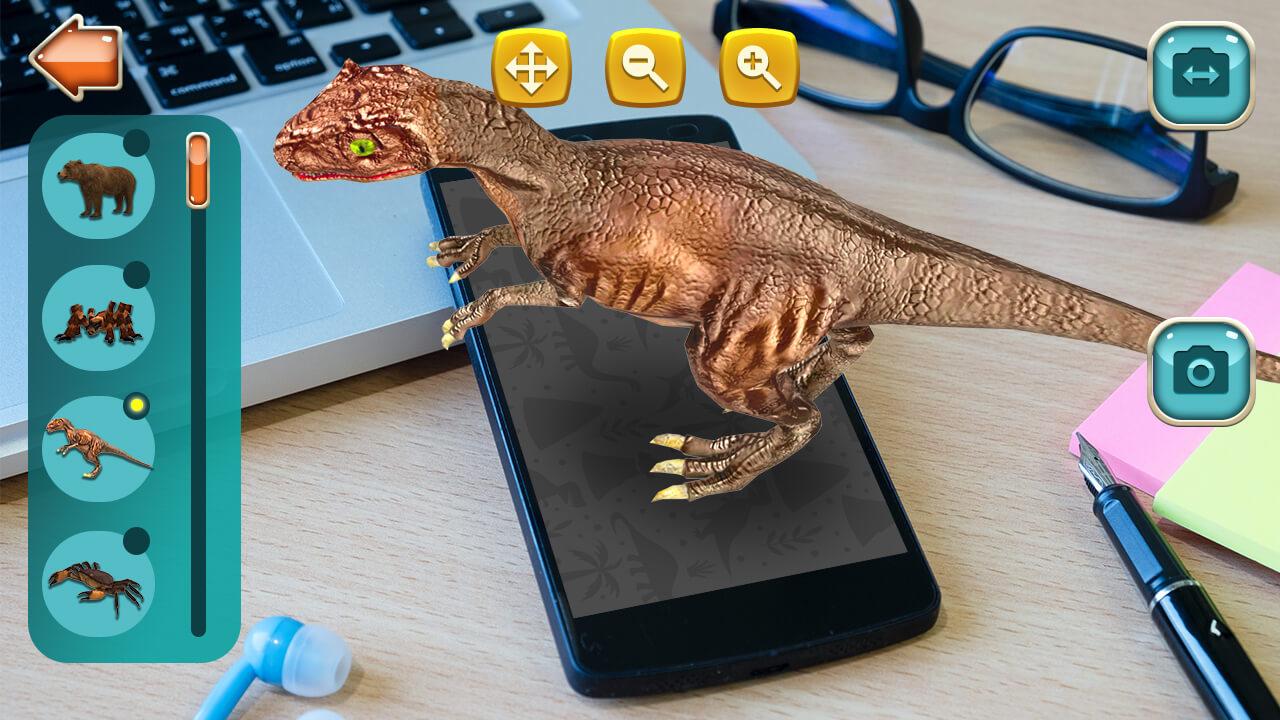 Wanna to impress the friends an incredible photo? Create colourful exciting frames with the Dinosaur 3D AR Effect app. Friends amuse seeing themselves with the dinosaur. in the shark mouth or the huge spider paws. Make the new photo, choose 3D animals and place on the picture. Change the size, rotate and move the animals, creating amazing effects. Strive to get the completely realistic shot. There are lovely seals and horses, dolphins and butterflies, menacing spiders and toothy sharks, terrible dinosaurs and giant elephants for your. Feel like a cool director of amazing 3D scenes. Create the frame worthy of the fantastic and horror films. Share the photo on the web. Learn the virtual reality and have fun.
