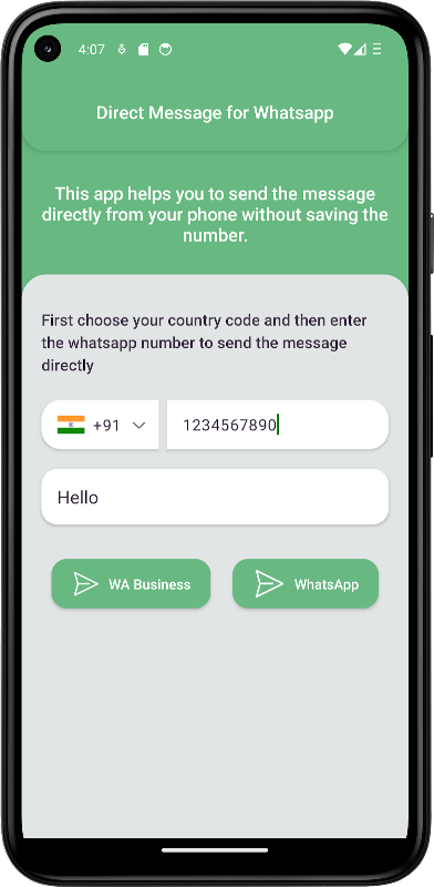 سپس این برنامه Direct Message For WhatsApp ابزاری عالی است که به دنبال آن هستید. این برنامه می تواند مستقیماً بدون ذخیره شماره، چت را در واتس اپ باز کند. پس از شروع چت یا هر چیزی که می خواهید.