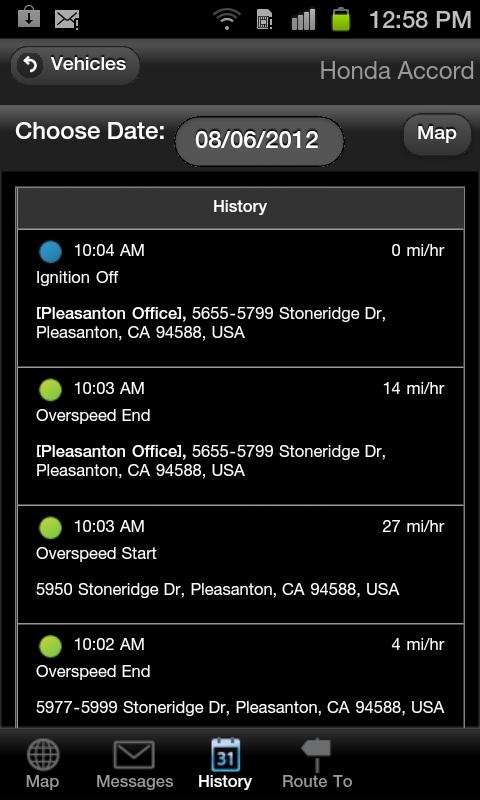 • پخش یک روز: مشاهده تاریخچه رانندگی (دنباله خرده نان) یک وسیله نقلیه را به عنوان بر روی نقشه رسم.