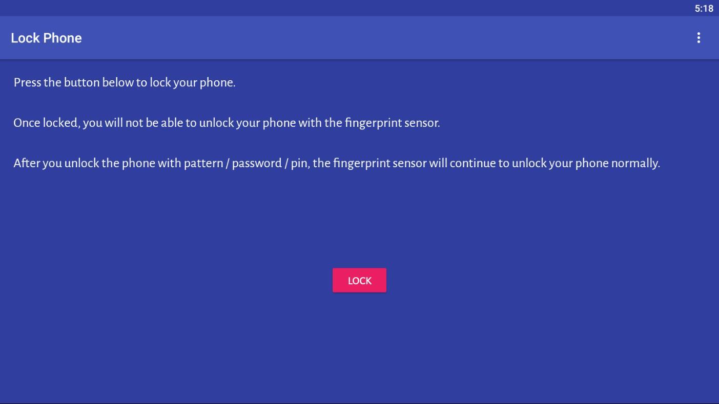 2. Fingerprints are not 100% secure. You can use this app to lock your phone when you are going to keep your phone in a public place for a long time, like while charging your phone in your office.