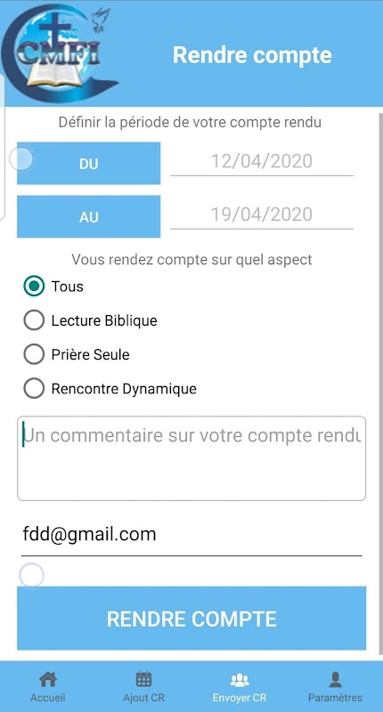 For this first version of the discipleship/accountability App, the following functionalities are supported: