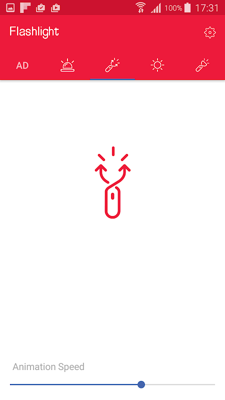 The application has also a lightbulb image on the screen. You can increase or decrease the power of the light with sliding your finger over this image.