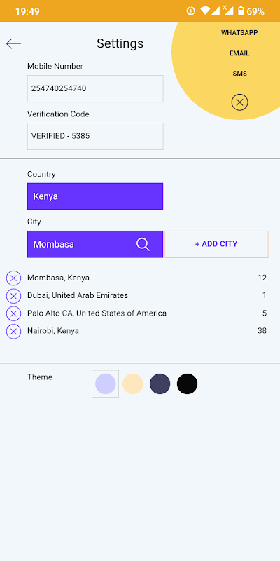 DISCOUNT provides 24 shopping categories and is available in 4,500 cities globally. Start by selecting the cities you wish to buy or sell in. Verify your mobile number via SMS, and then you are good to go.