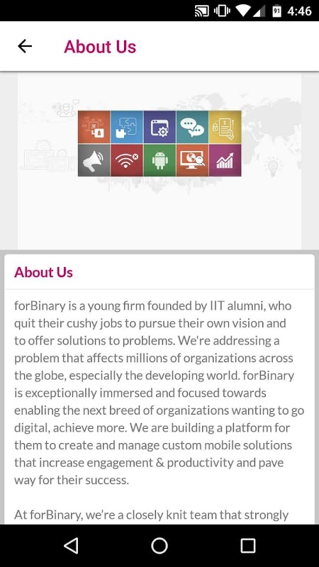 forBinary بستر های نرم افزاری اجازه می دهد تا کنترل کامل سازمان شما بیش از برنامه اشتغال خود را. برای کسب اطلاعات بیشتر در مورد forBinary بستر های نرم افزاری و آنچه ما می توانیم برای سازمان شما انجام دهید، لطفا از سایت ما http://forbinary.com/