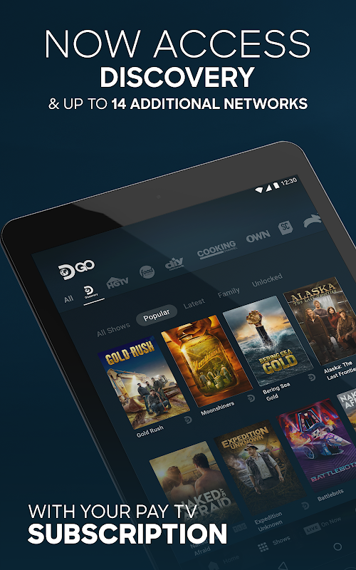 با برنامه کاملا جدید Discovery GO در هر زمان و هر مکان با برنامه های Discovery مورد علاقه خود آشنا شوید - و اکنون به حداکثر 14 شبکه دیگر از جمله TLC، HGTV، Food Network و موارد دیگر دسترسی داشته باشید - همه در یک برنامه. با پرداخت شما رایگان است. اشتراک تلویزیون