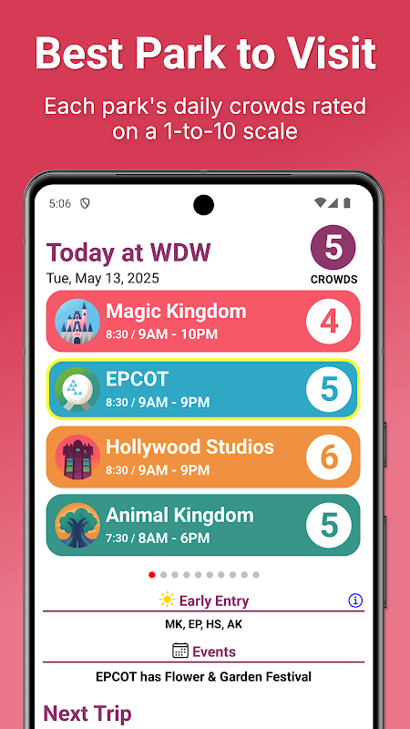 تقویم شلوغی به شما نشان می دهد که هر پارک در ده روز آینده چقدر شلوغ خواهد بود.