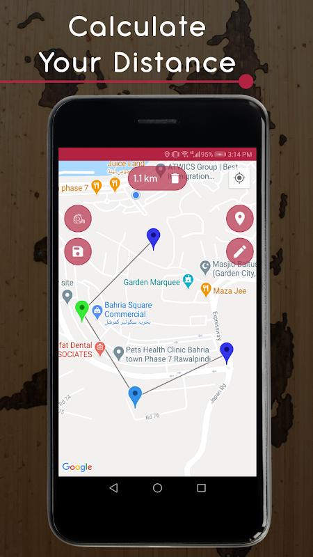 You can also calculate distance between two points by just dropping a mark at two different locations in sq m to sq ft. It will give you an exact calculation of distance.how much time you take from home to work, home to bus station or any other. measure distance through google maps you can run or walk by Maps. you can drive through this app and very easy to use you just need to put marks on different location and find exact distance between your selected points.