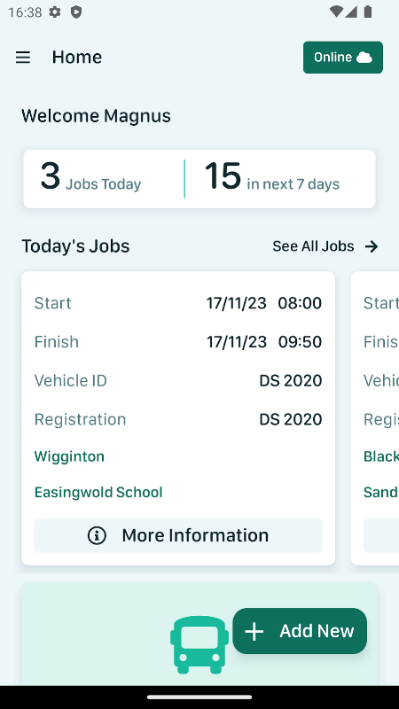 عملکرد شامل توانایی رانندگان برای انجام بررسی های روزانه و گزارش هر گونه نقص است. برای کاربران Coach Manager همچنین به رانندگان اجازه میدهد فهرستی از رزروهایی که به آنها اختصاص داده شده را مشاهده کنند، جزئیات کامل هر کدام را مشاهده کنند و در حالت رانندگی از طریق هر کدام راهنمایی شوند.