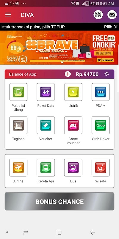 DIVA دیجیتال یک برنامه کاربردی است که می تواند برای افزایش شماره پیش پرداخت در اندونزی، پرداخت صورتحساب، BPJS، PDAM، برق، خرید کوپن، بازی آنلاین، گرفتن، سفر و غیره استفاده شود.