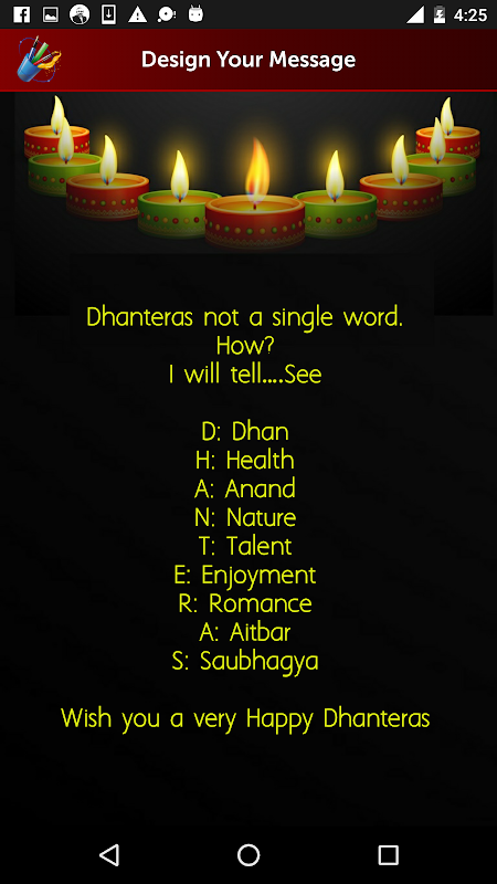برنامه طراحی شده است برای ایجاد و ارسال یک پیام دیوالی تبریک سفارشی به بستگان، دوستان، اعضای خانواده خود را.