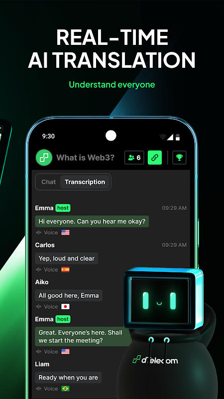 • مترجم صوتی هوش مصنوعی در زمان واقعی در طول جلسات