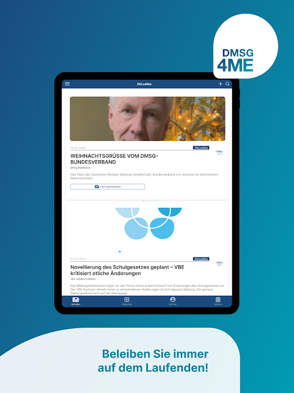 با DMSG4ME، به عنوان یک فرد مبتلا به MS (MS) یا به عنوان یکی از بستگان، این فرصت را دارید که در هر زمان با دیگران ارتباط برقرار کنید، با انجمن منطقه ای خود ارتباط برقرار کنید و اطلاعات دریافت کنید و پشتیبانی پیدا کنید - اکنون مستقیماً در تلفن هوشمند خود.