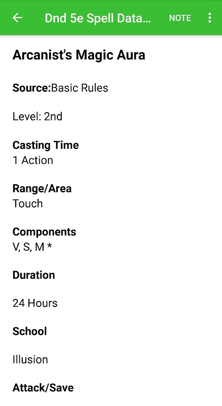 • برنامه‌نما Dnd 5e Spell Database عکس از صفحه
