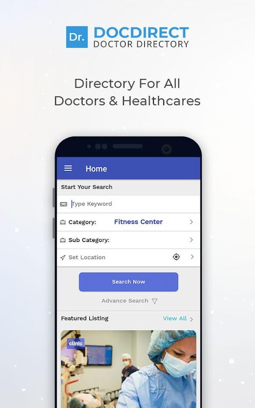 DocDirect Andriod APP برای مراقبت های بهداشتی و سایر حرفه های مرتبط است. طراحی شده است به طوری که می توان آن را به عنوان یک دایرکتوری مهندسین، فهرست وکیل، دایرکتوری دستی، دایرکتوری خدمات کسب و کار، دایرکتوری دامپزشکی، دایرکتوری ارائه دهنده خدمات، دایرکتوری کسب و کار و خدمات پیدا، فهرست کسب و کار و یا به عنوان یک دایرکتوری برای حرفه ای دیگر به عنوان آن استفاده می شود دارای بسیاری از ویژگی های یک وب سایت دایرکتوری ممکن است (و بسیاری دیگر!)