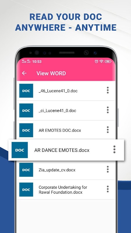 Docx file viewer integrates two function manage docx and read docx file on the phone screen. Docx file viewer app has a simple interface and makes it easier to read docx file and manage doc file with docx viewer & docx reader. Doc viewer tool that allows you to open, navigate, preview and read docx file with doc reader.