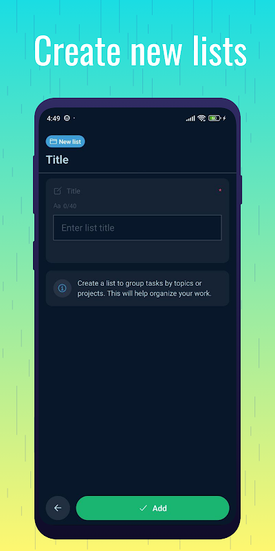 لیستهای نامحدودی برای کار، اهداف شخصی، خرید یا هر هدف دیگری ایجاد کنید. به سرعت و به راحتی بین لیستها جابجا شوید.